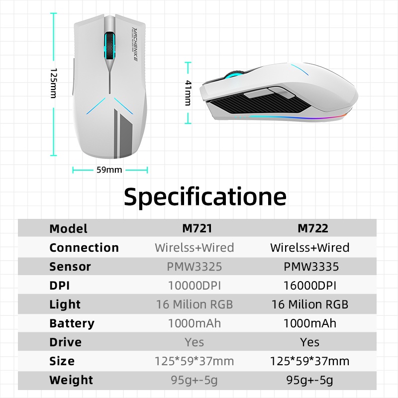 Machenike M7 Gen 2 Dual Mode Mouse Wired/Wireless Gaming RGB Backlight