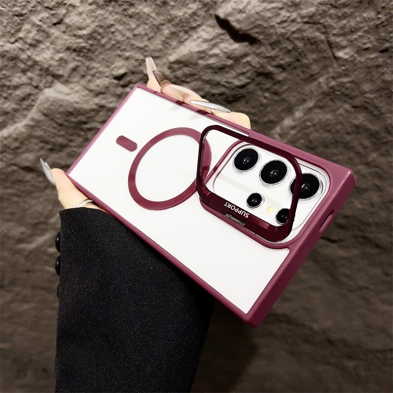 Magnetic Charging Phone Case For For Samsung Galaxy S24FE S25 S24 S23 S22 Ultra S23FE S24+ S25Plus S23+ Invisible Lens Stand Casing Shockproof Anti Drop Hard Back Cover