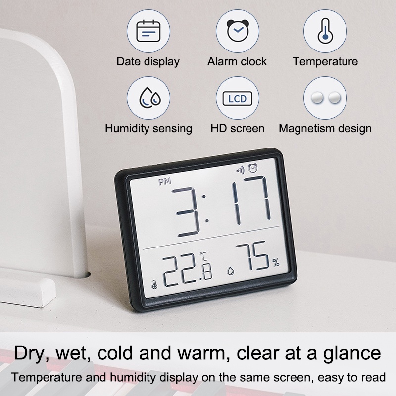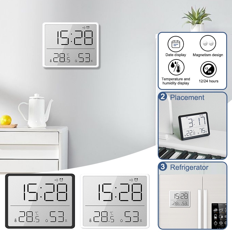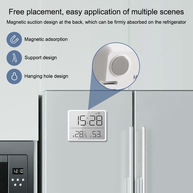 Magnetic LCD Digital Alarm Clock Large Screen Date Temperature Humidity Display Multi-functional Desk Refrigerator Wall Mounted