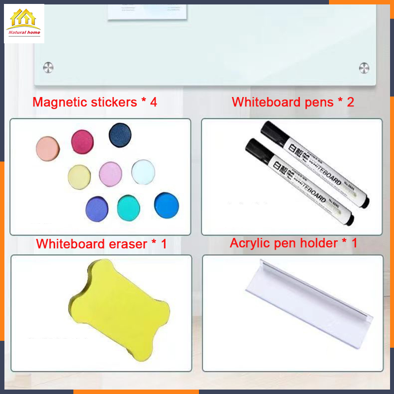Magnetic Tempered Glass Whiteboard Writing Board Office Meeting Room Wall-Mounted Home Education Cram School Note Board