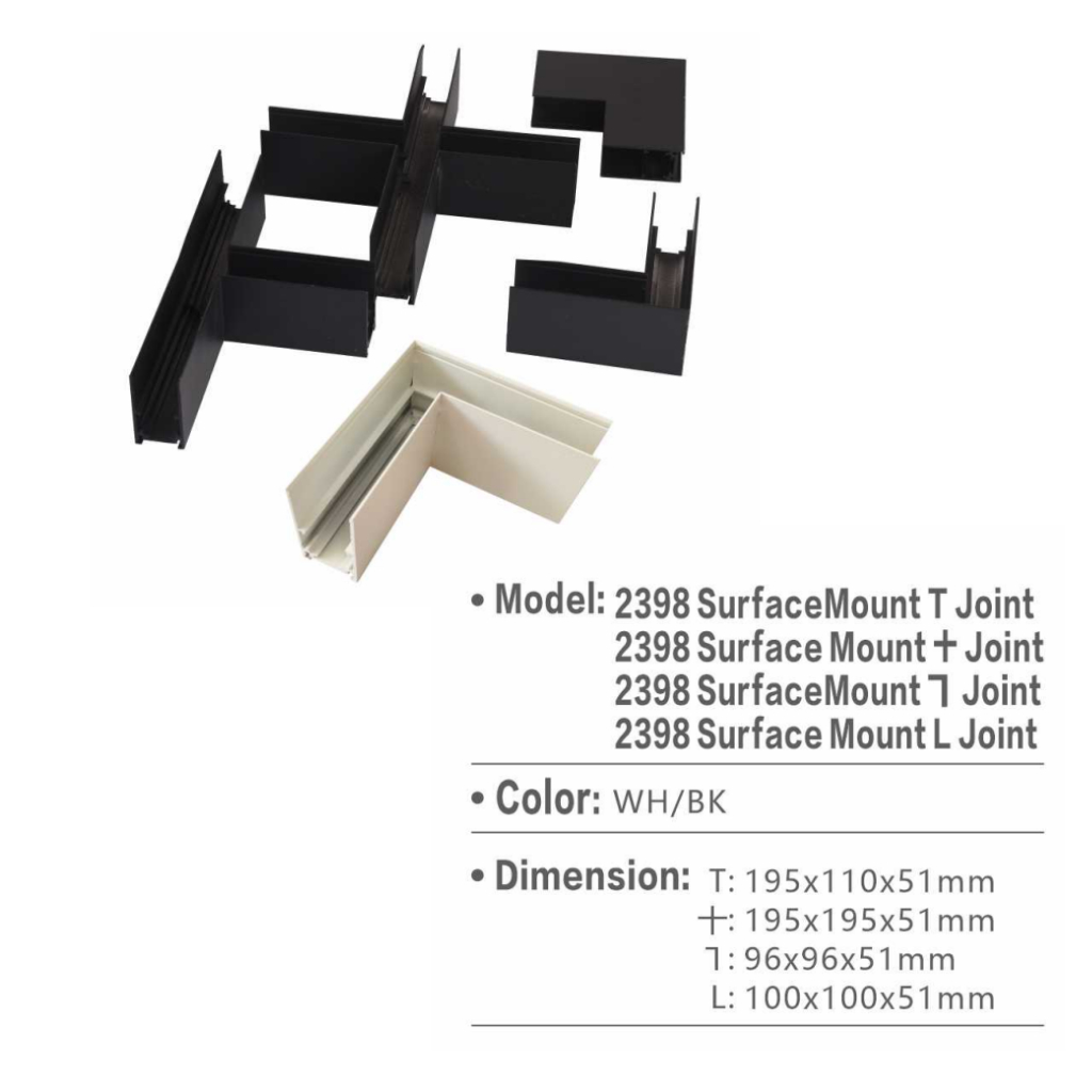 Magnetic Track Light System Recessed Surface Track Joints T/+/L and 2 Way Module
