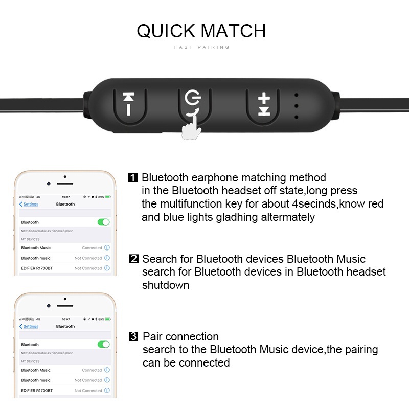 Magnetic Wireless headset Bluetooth Earphone Stereo Sports Waterproof Earbuds with Mic