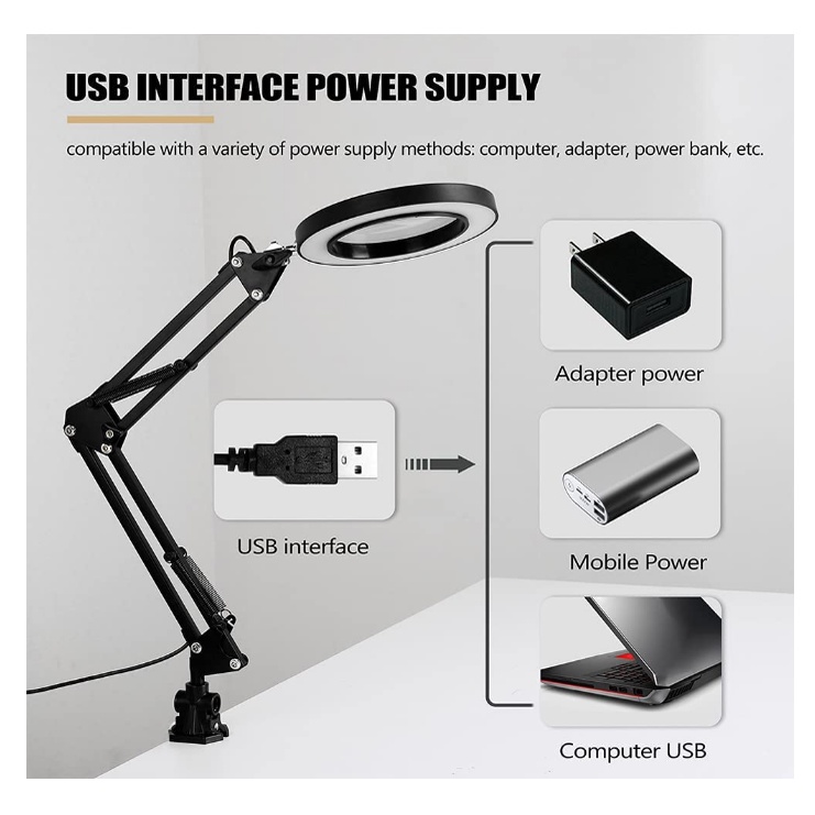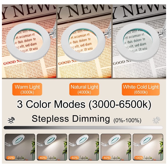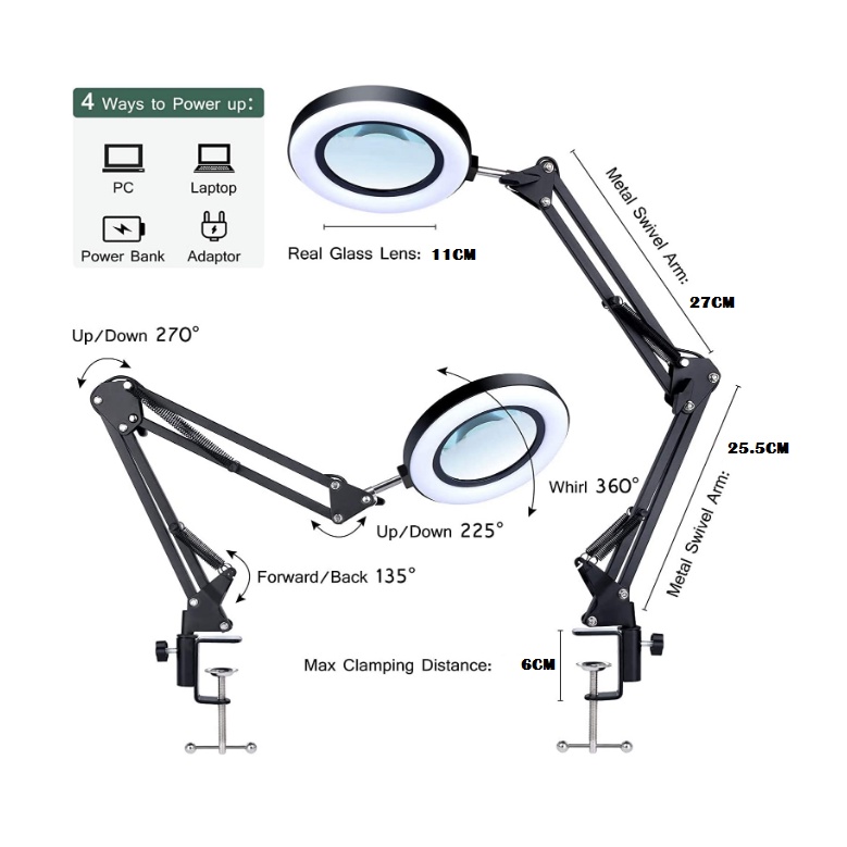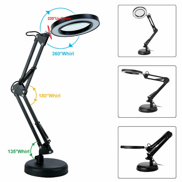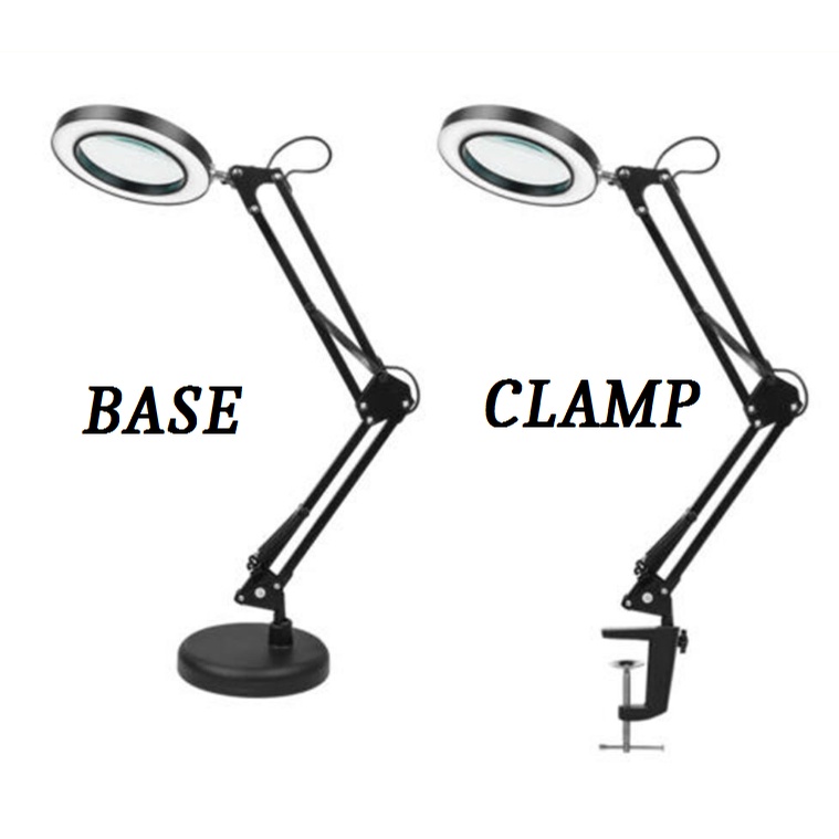 Magnifying Lamp with Clamp, / Base Lighted Magnifier Desk Lamp with Long Swing Arm
