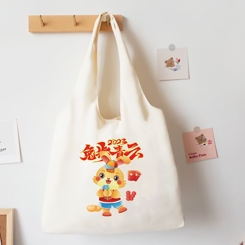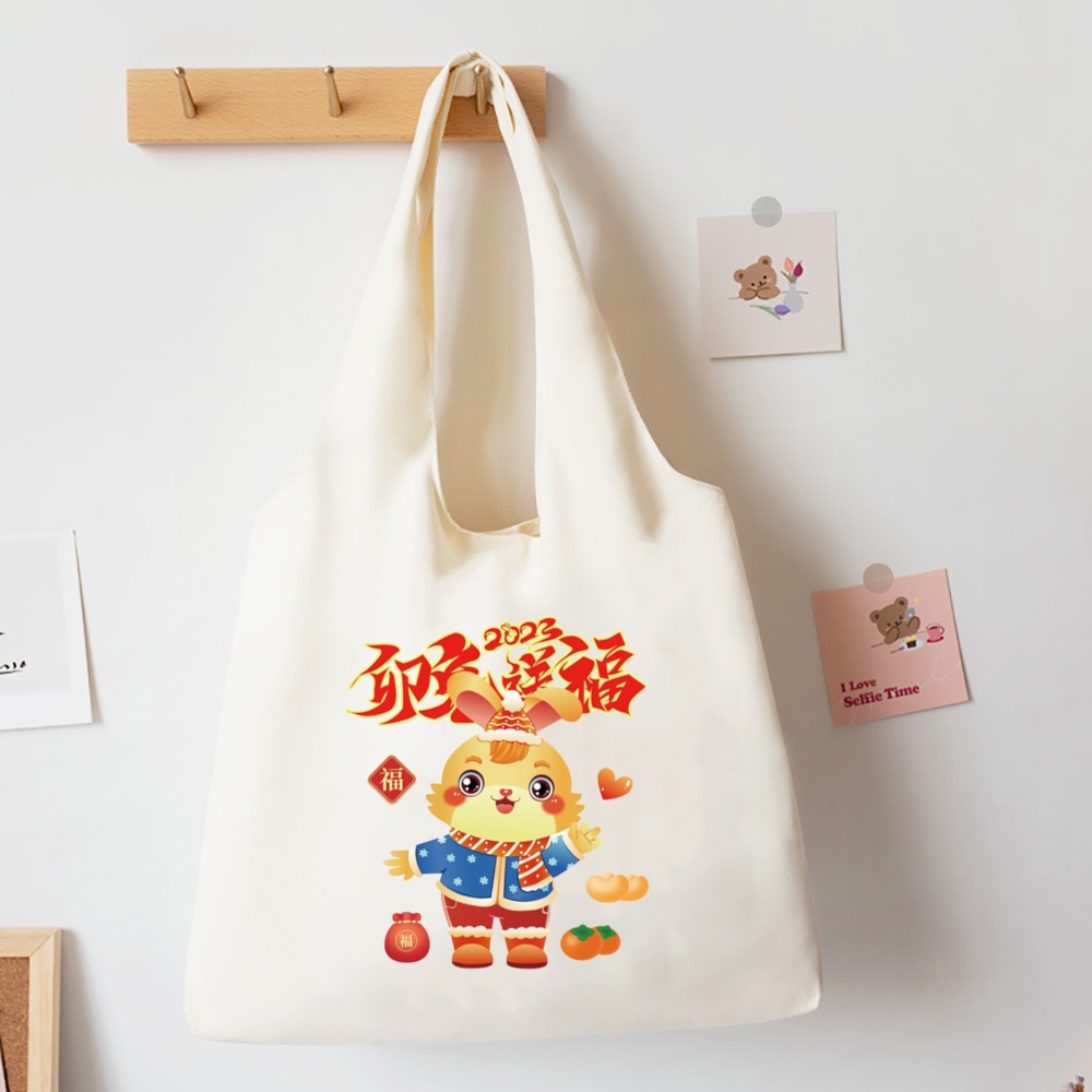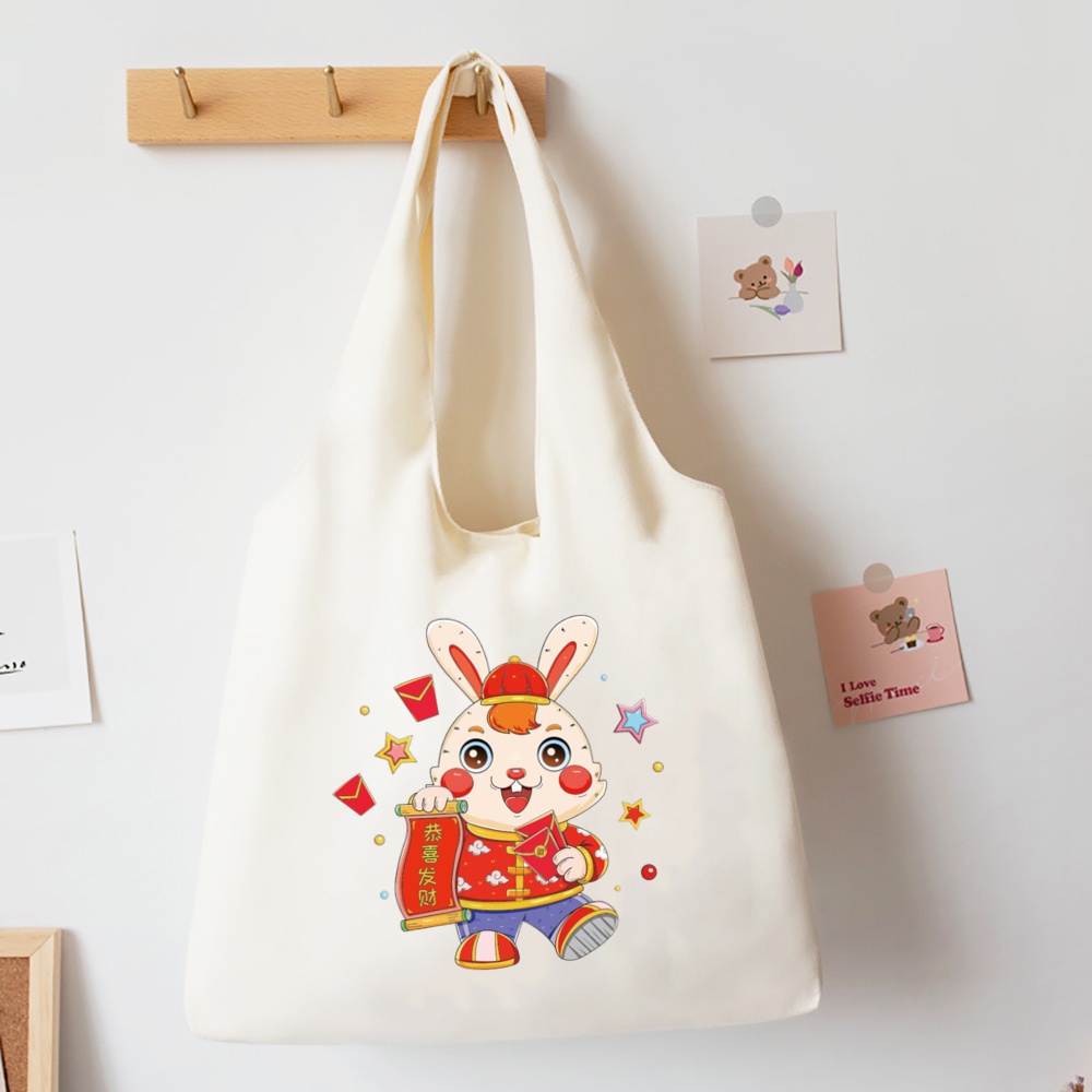 Mahjong Pattern Print Shoulder Bags Cute Canvas Bag Shopping Bag Tote Bag New Year Travel Bag Handbag