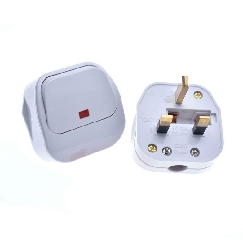 Mains Plug Top With On/Off Switch 13A Amp Fused 3 Pin Switched Neon Light White