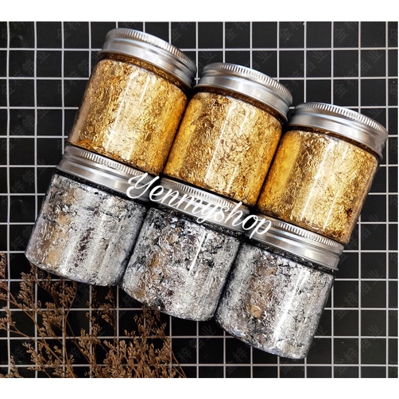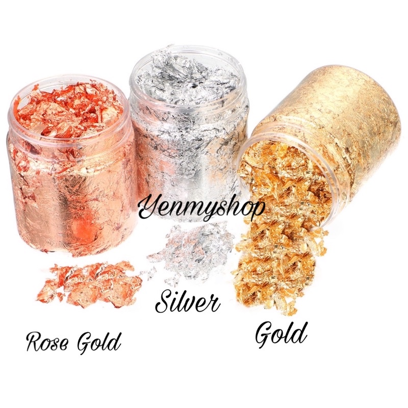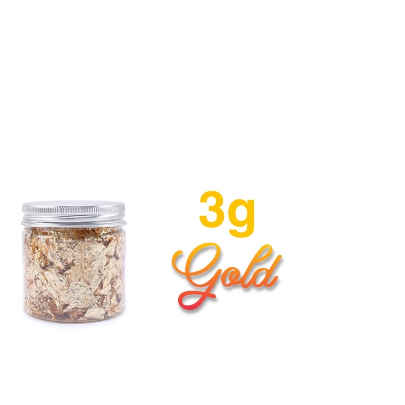 Makanan Emas Edible Gold Flakes 3g | Edible Silver Flake | Sprinkles | Gold Leaf Flakes | Edible Gold Leaf Silver Flakes