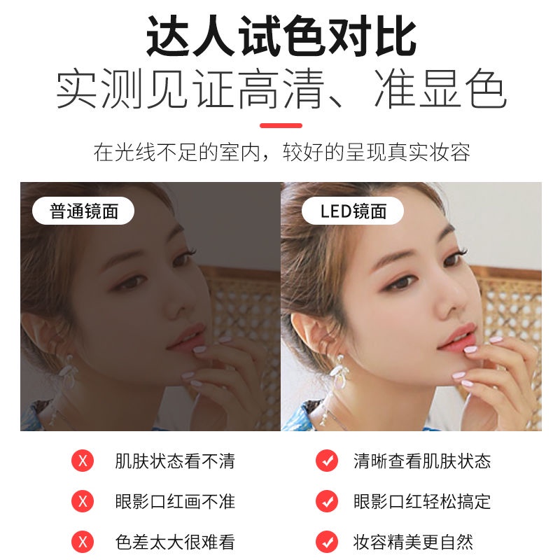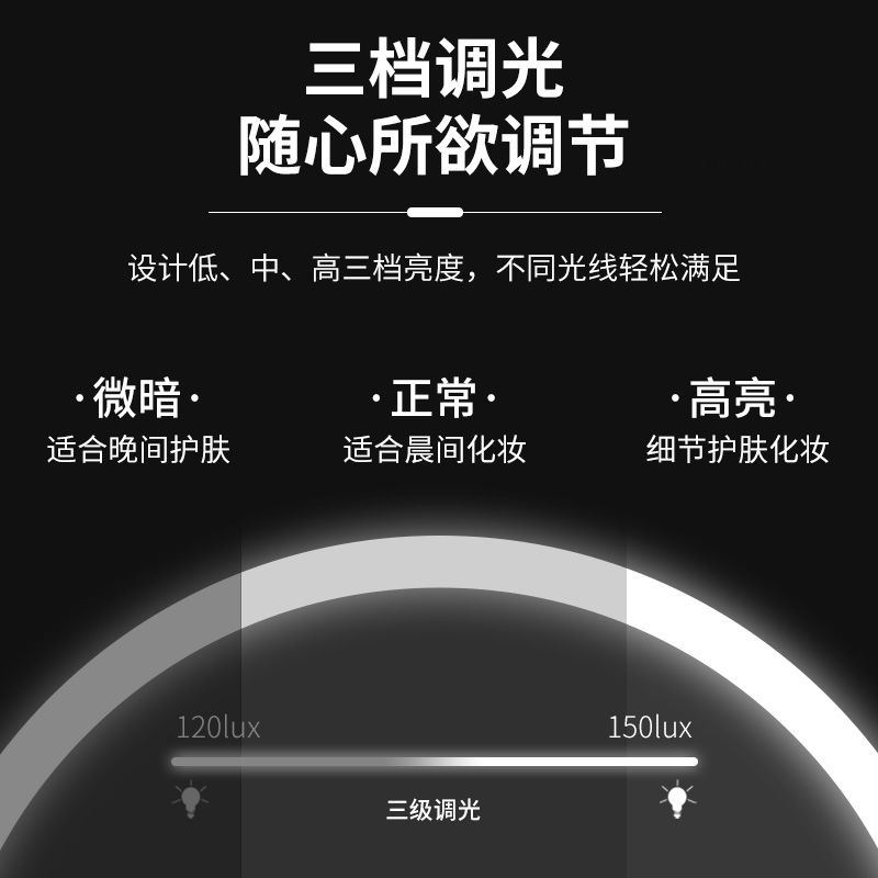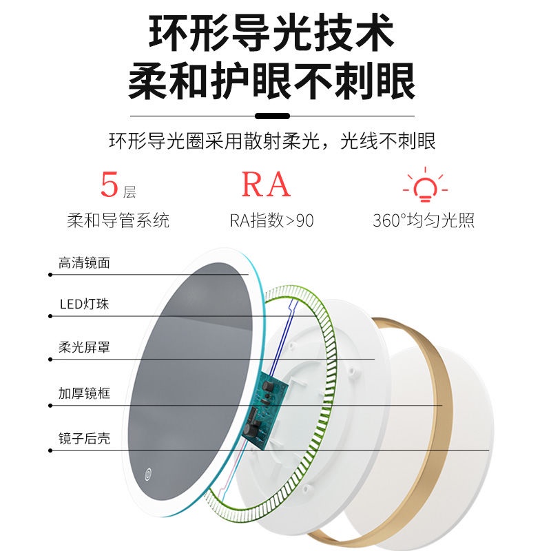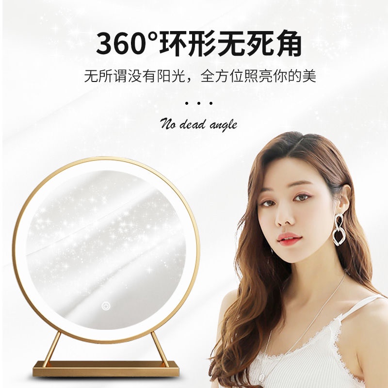 Makeup Mirror with 3 tone led Light Cosmetic Beauty Tabletop Mirror RechargeableDressing Table Makeup Mirror Household LED Light Luxury Ins Style Desktop Student Large Bedroom Large round Mirror