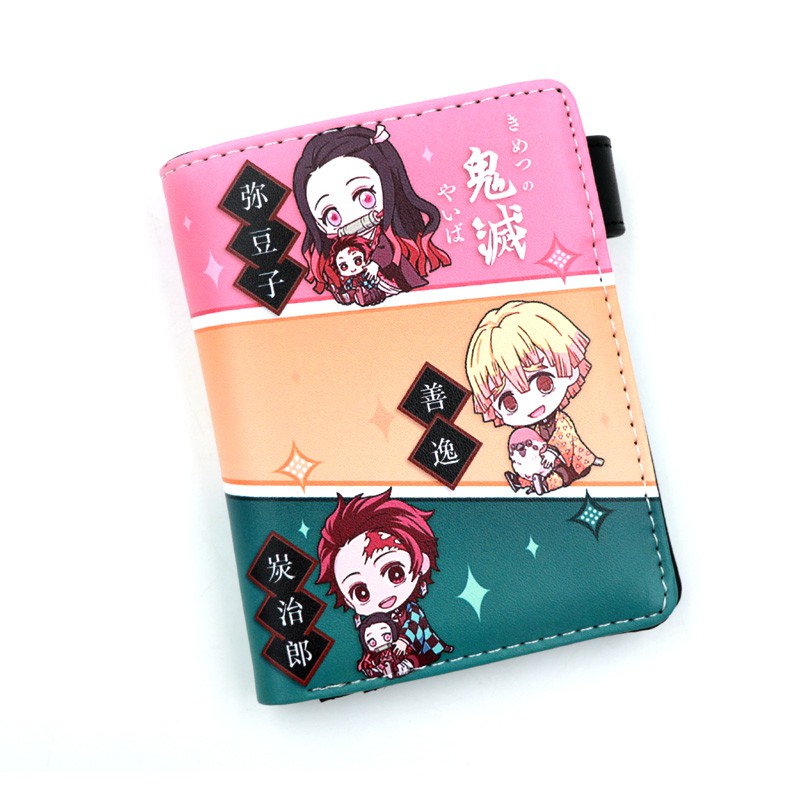 Manga Demon Slayer: Kamado Agatsuma Zenitsu Inosuke Soft Button Wallet Zipper Coin Card Purse