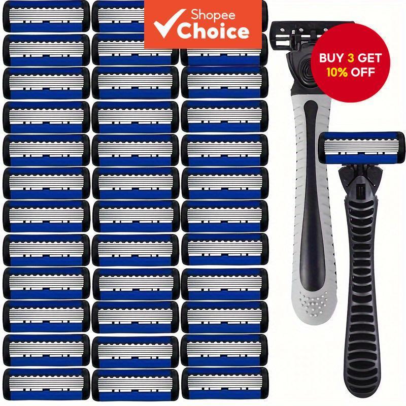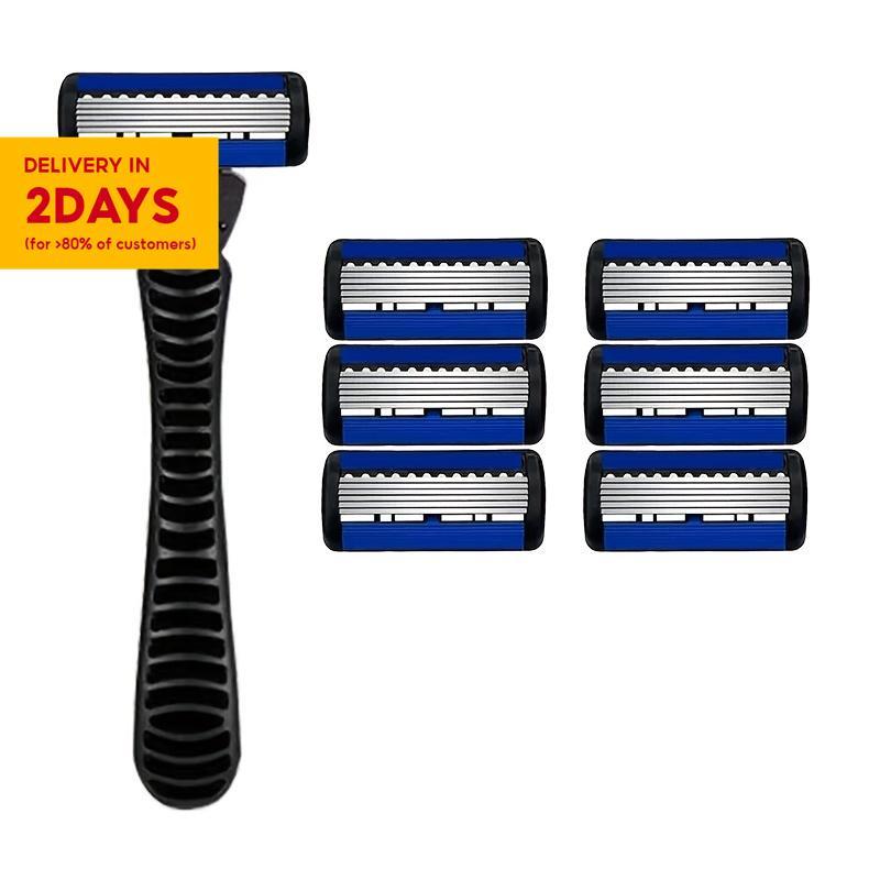Manual shaver/Men's Razor Replacement Head/6-layers Manual Razor Blades/Reusable Stainless Steel Razor Blades Refills