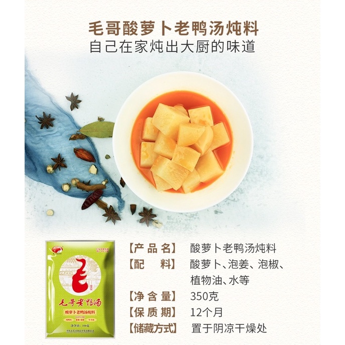 毛哥老鸭汤 酸萝卜老鸭汤炖料 350g MaoGe Radish Duck Soup Paste 350g