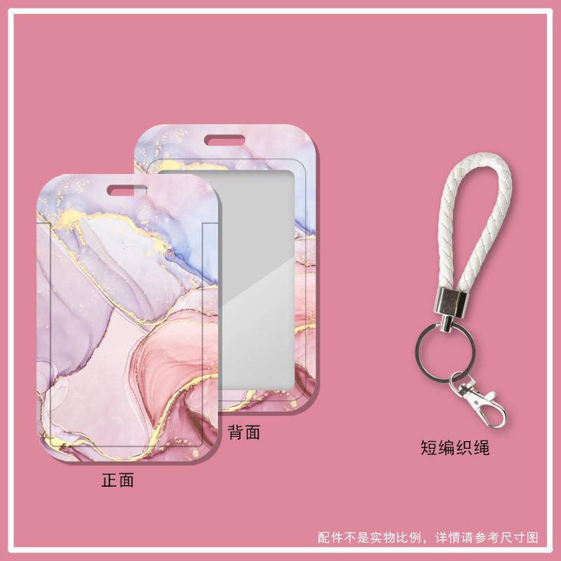 Marble texture card cover for student campus card case with lanyard hanging neck card cover subway card protective case