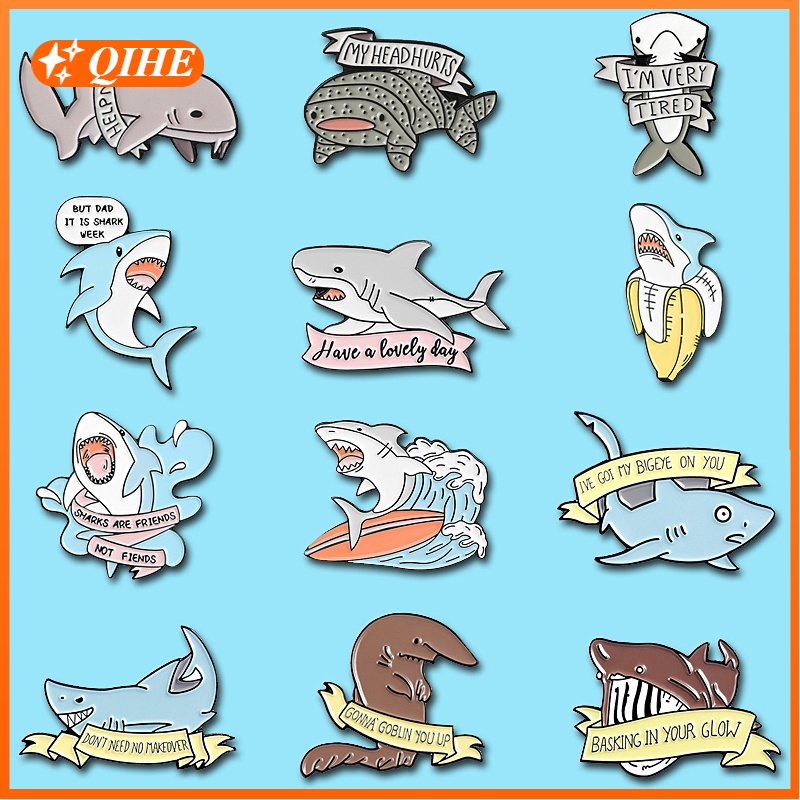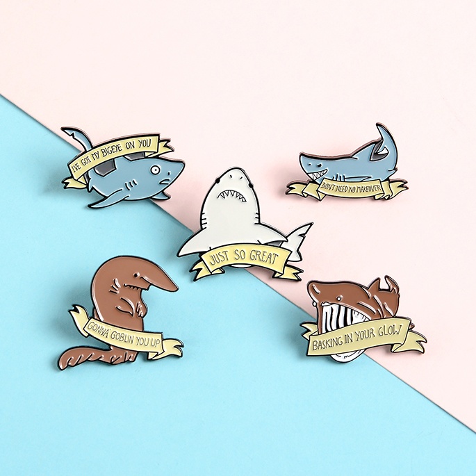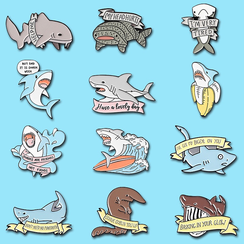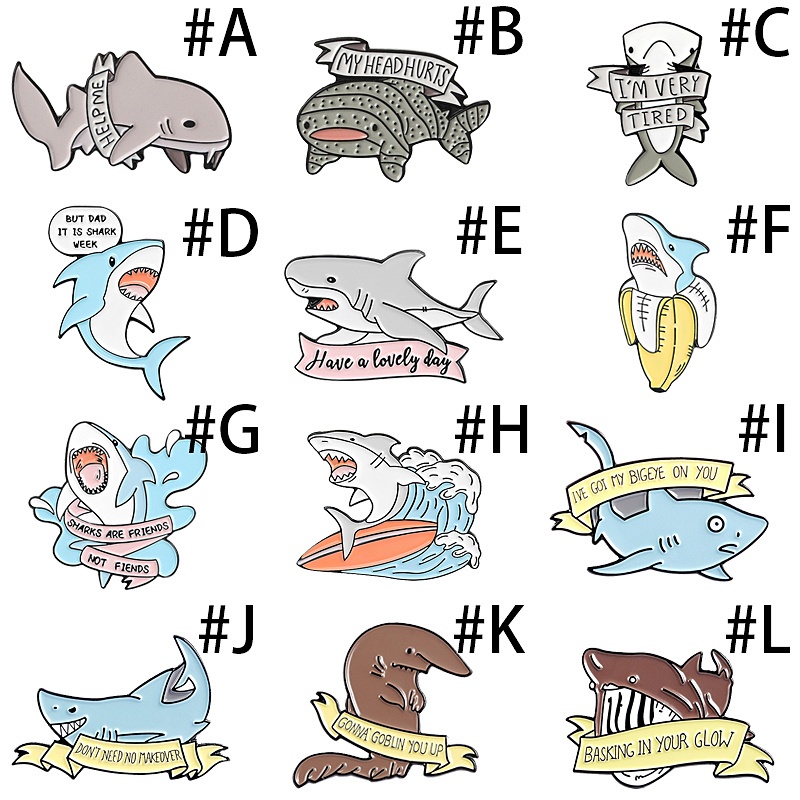 Marine Life Brooch Shark Letter Pin Skateboard Shark Pin Banana Shark Pin Cartoon Shark Badge Lapel Pin Ocean Lover Gifts