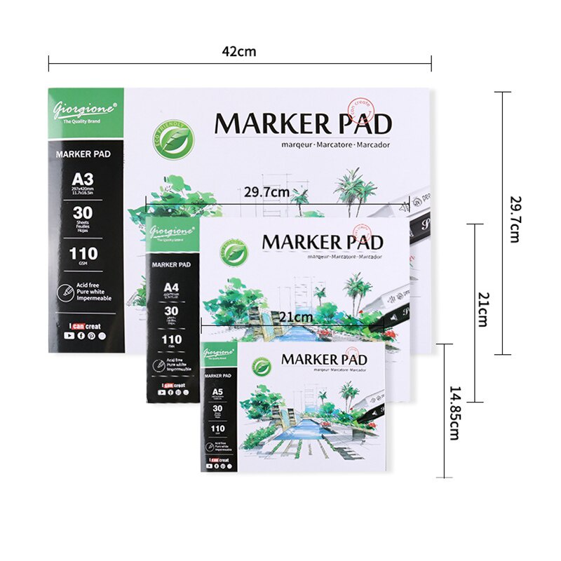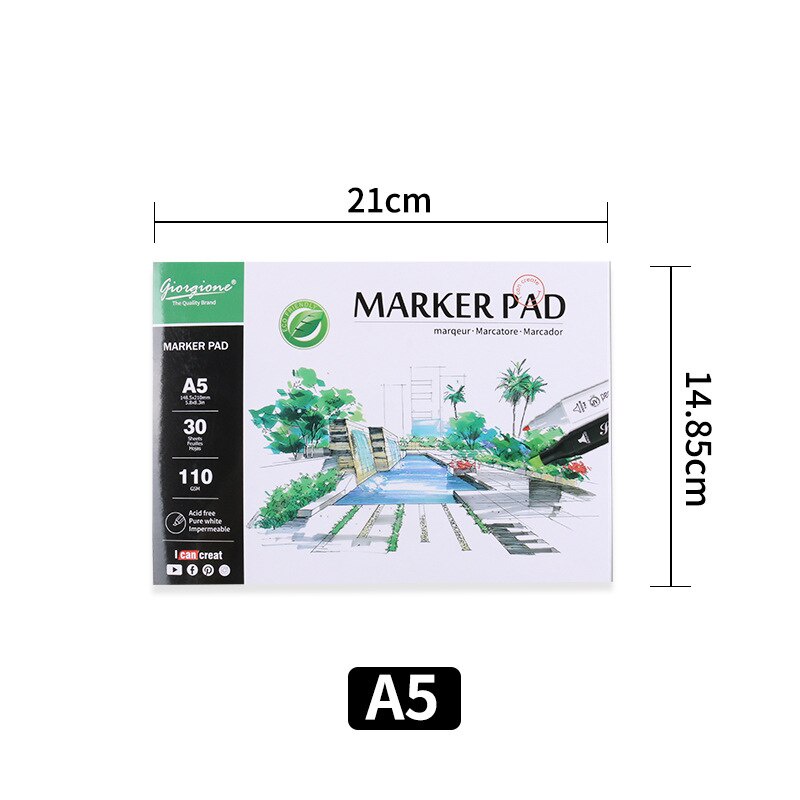 Marker Pad A3/A4/A5 Marker Pen Drawing Book 110gsm Painting Paper 30 Sheets