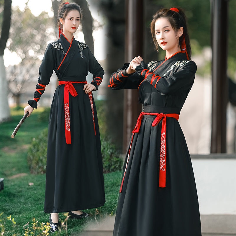 Martial Arts Style Hanfu Female Chinese Cross Collar Waist-Length Skirt Male Student Class Uniform Couple Ancient Costume Daily Spring Summer Autumn W