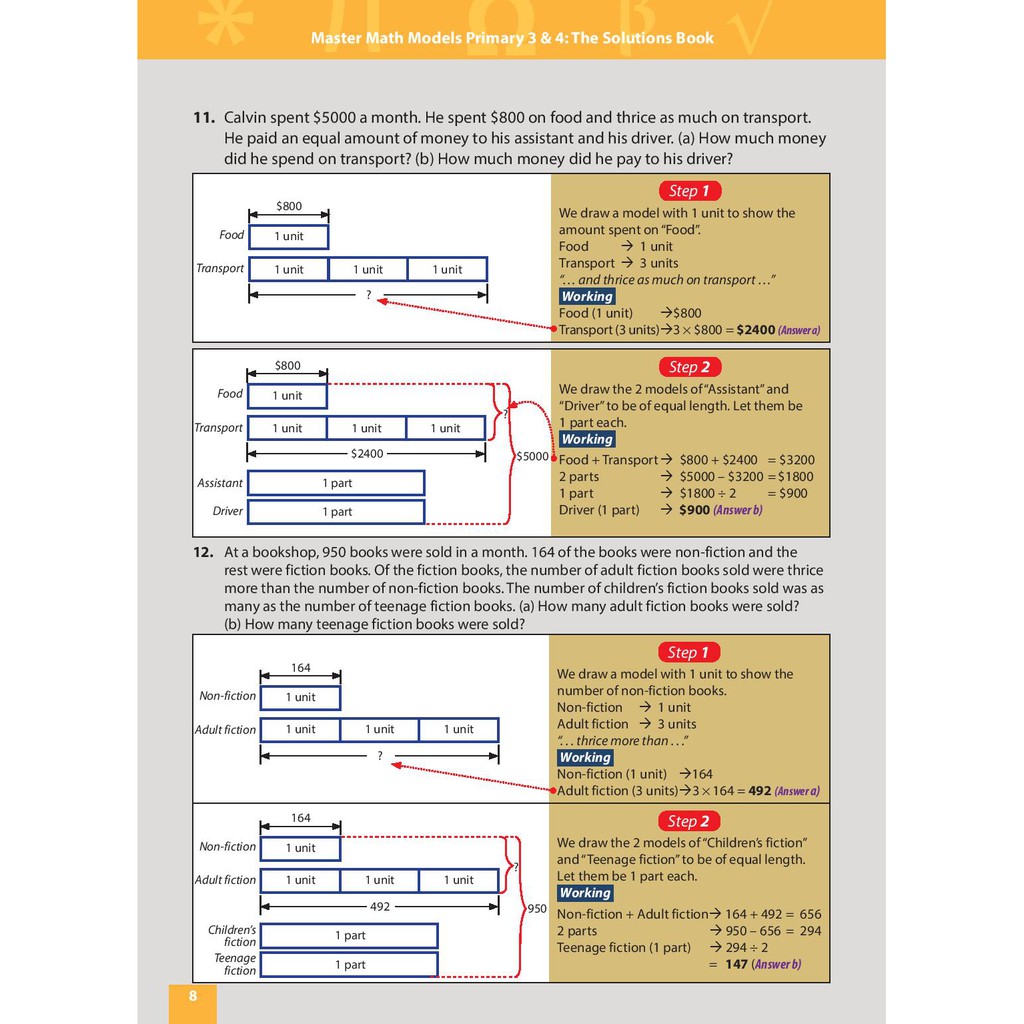 Master Math Models Primary 3 & 4 The Solutions Book | Singapore Mathematics model drawing strategies | MOE new syllabus