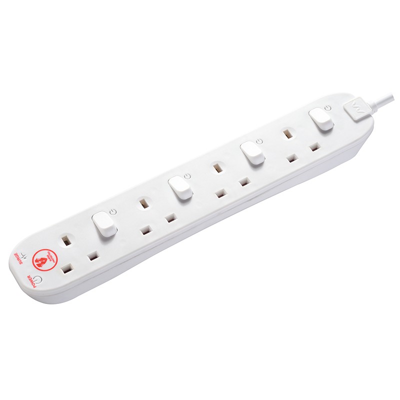 MasterPlug Individually Switched with Surge and Individual Power LED, 4 Socket, 2M, White (SWSRG42N)