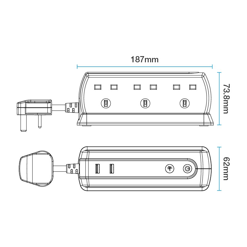 MasterPlug Surge USB Compact Extension Leads | 2x 2.1A USB | 6 Socket, 2M | SRGDU62MB2