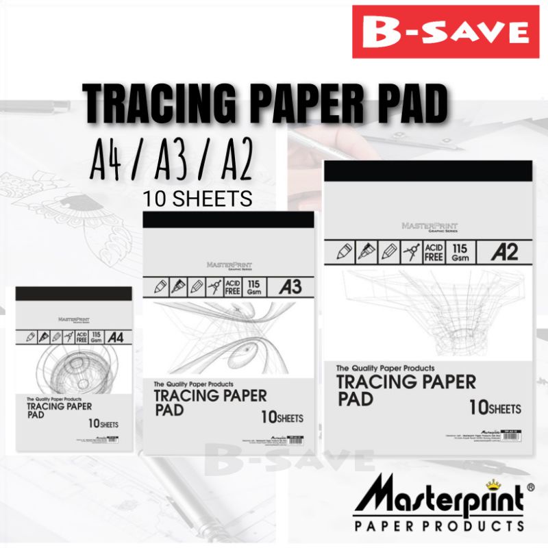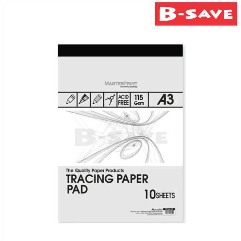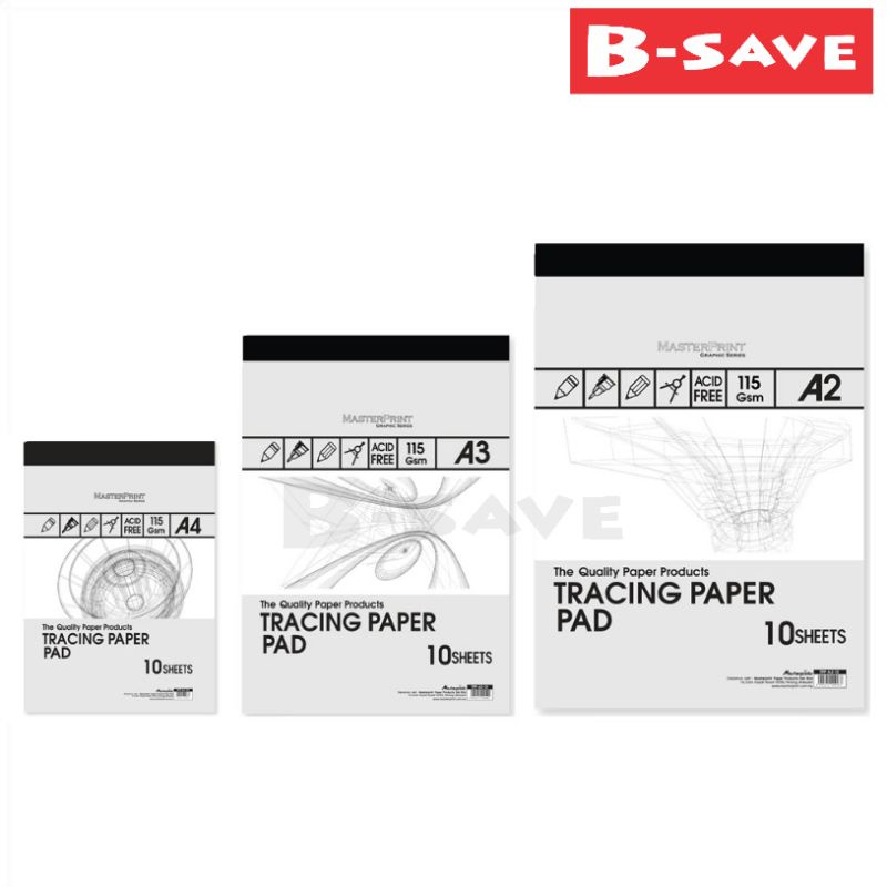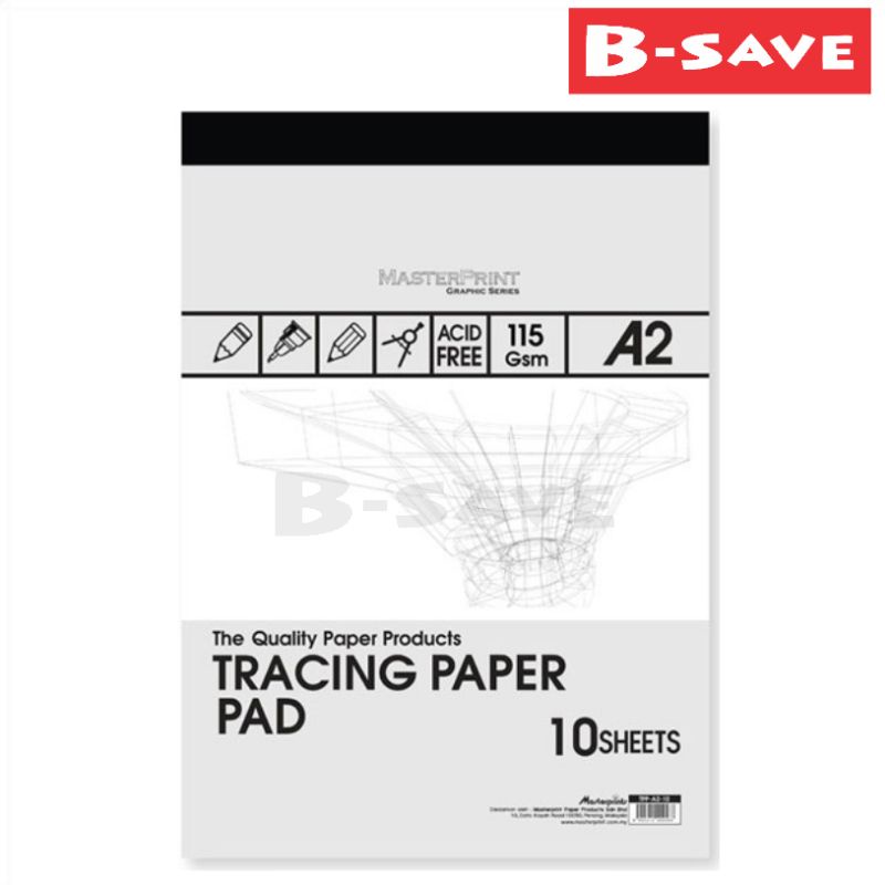 Masterprint Tracing Paper Pad 115gsm 10 sheets A4/A3/A2 Kertas Surih (Graphics Drawing Plan)
