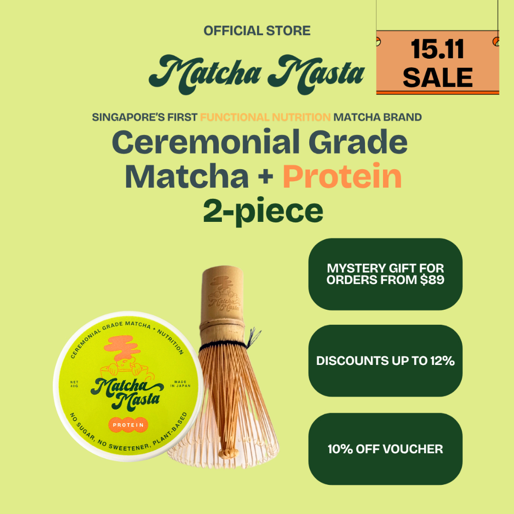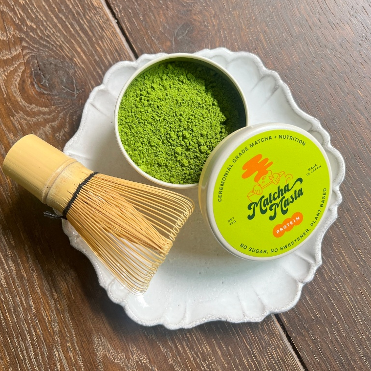 Matcha Masta Matcha + Protein 2 Piece Set Bundle (40g Matcha + Protein Tin, 100 Prong Bamboo Whisk