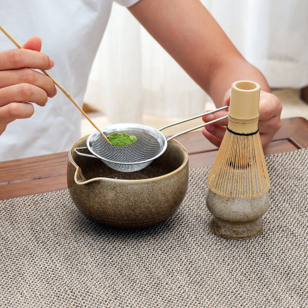 Matcha Whisk Set Japanese Tea Set Matcha Tea Ceremony Premium Kit Set (Tea Bowl with Pouring Spout)