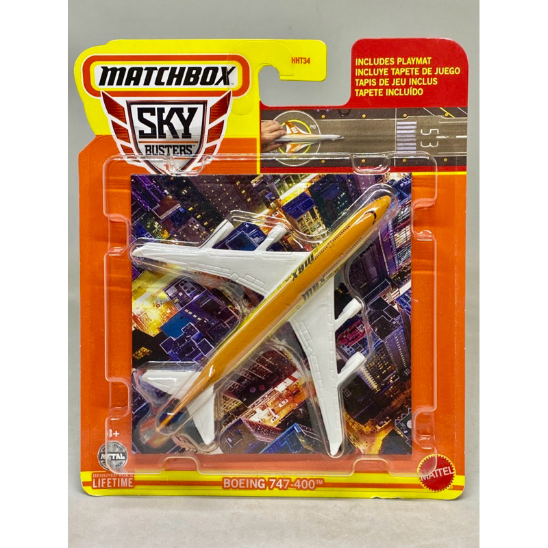 Matchbox BOEING 747 400 AIRLINER Orange Transporter Sky Busters Passenger Aircraft Diecast Plane Hotwheels Kapal Terbang