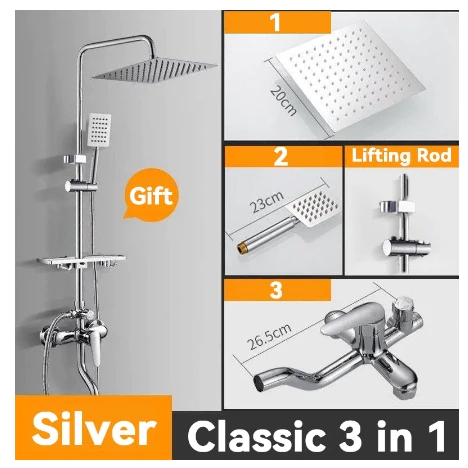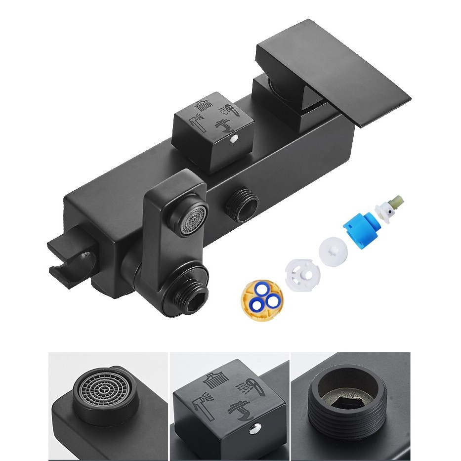 ⚡SG Stock⚡Matte Black Deluxe Bath Rain Shower Exposed Mixed Tap Faucet Rainfall Square Shower Set