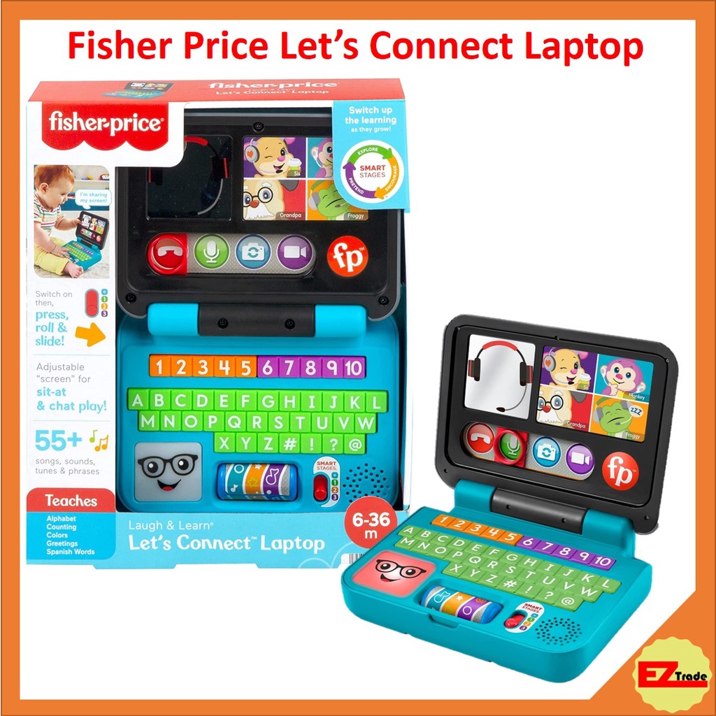 Mattel Fisher-Price Laugh & Learn Let's Connect Laptop, Electronic Toy with Lights, Music, Smart Stages Learning HCF33