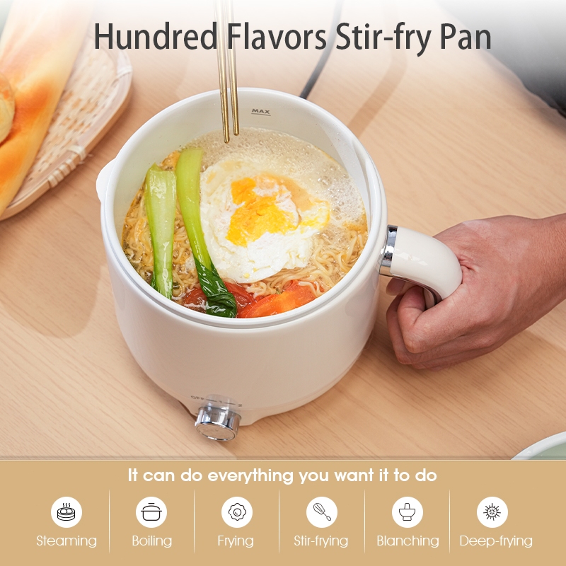 MEEVIDA Electric Cooking Pot 1.8L Mini Multi-function 2 Adjustable Levels Simmer Soup Porridge Cooker Pot