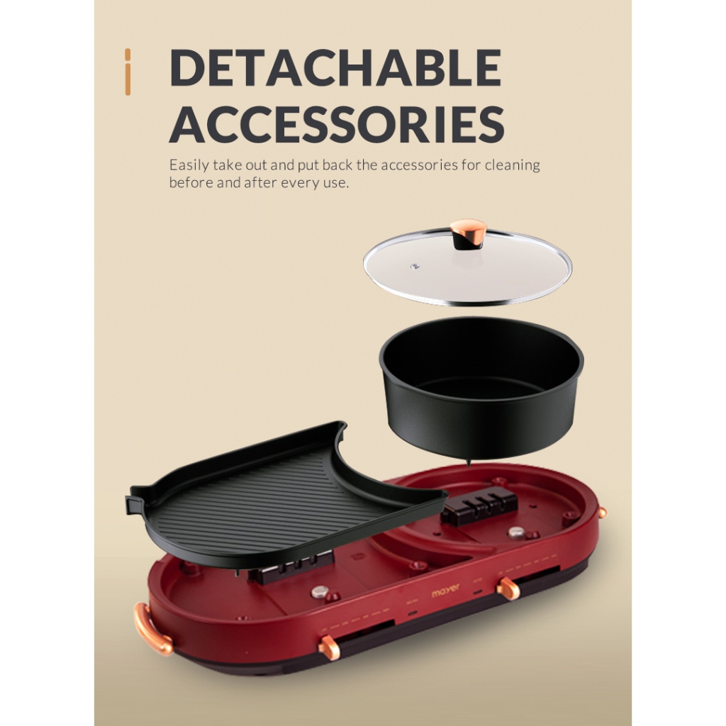 Mayer Multi-Functional Hot Pot with Grill MMHPG5 - Red