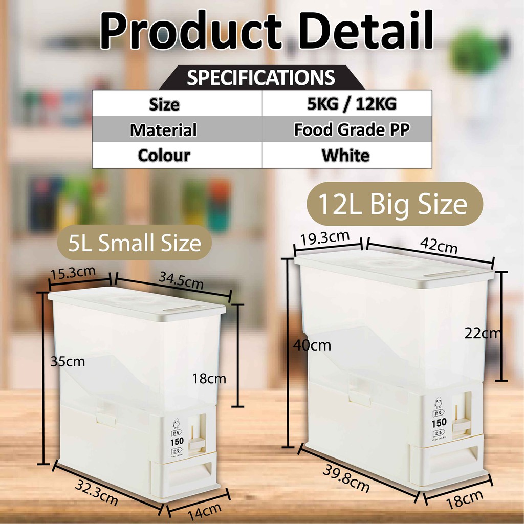 Measuring Rice Bucket Rice Storage Box, Measurable Sealed Rice Dispenser. Rice Storage Box Kitchen Storage Box.
