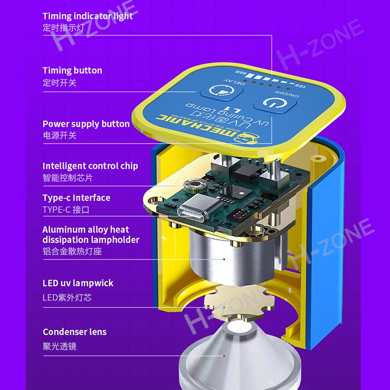 Mechanic L1 Intelligent UV Curing Lamp Green Oil Fast Curing Light for Mobile Phone Motherboard UV Glue Curing Repair Lamp