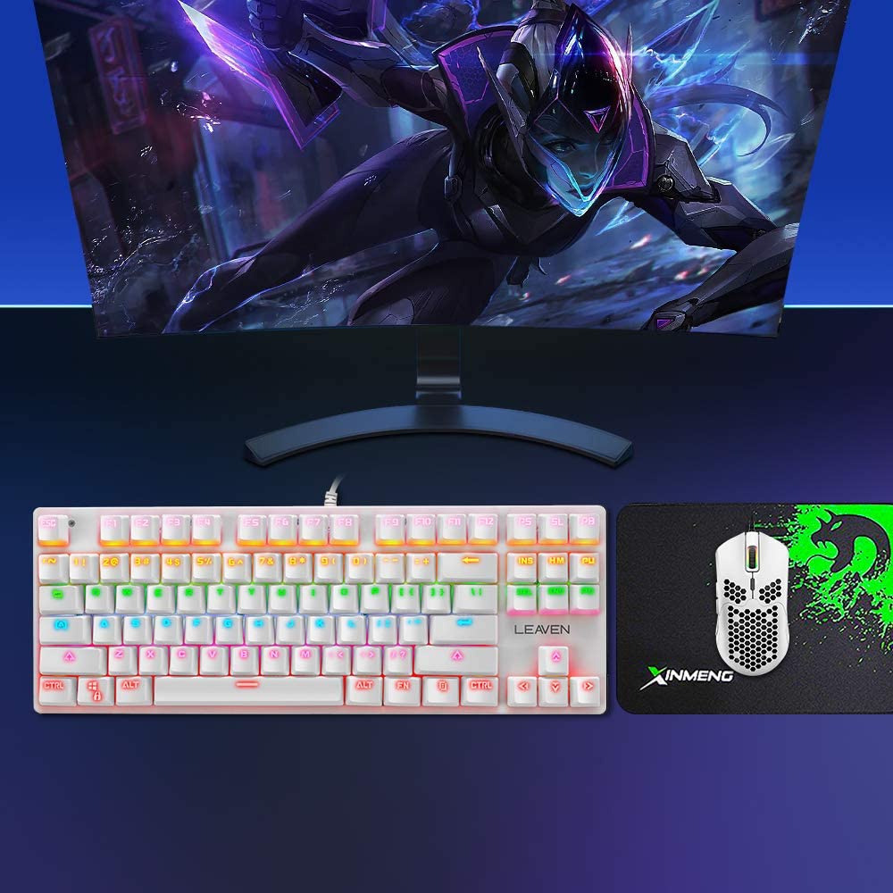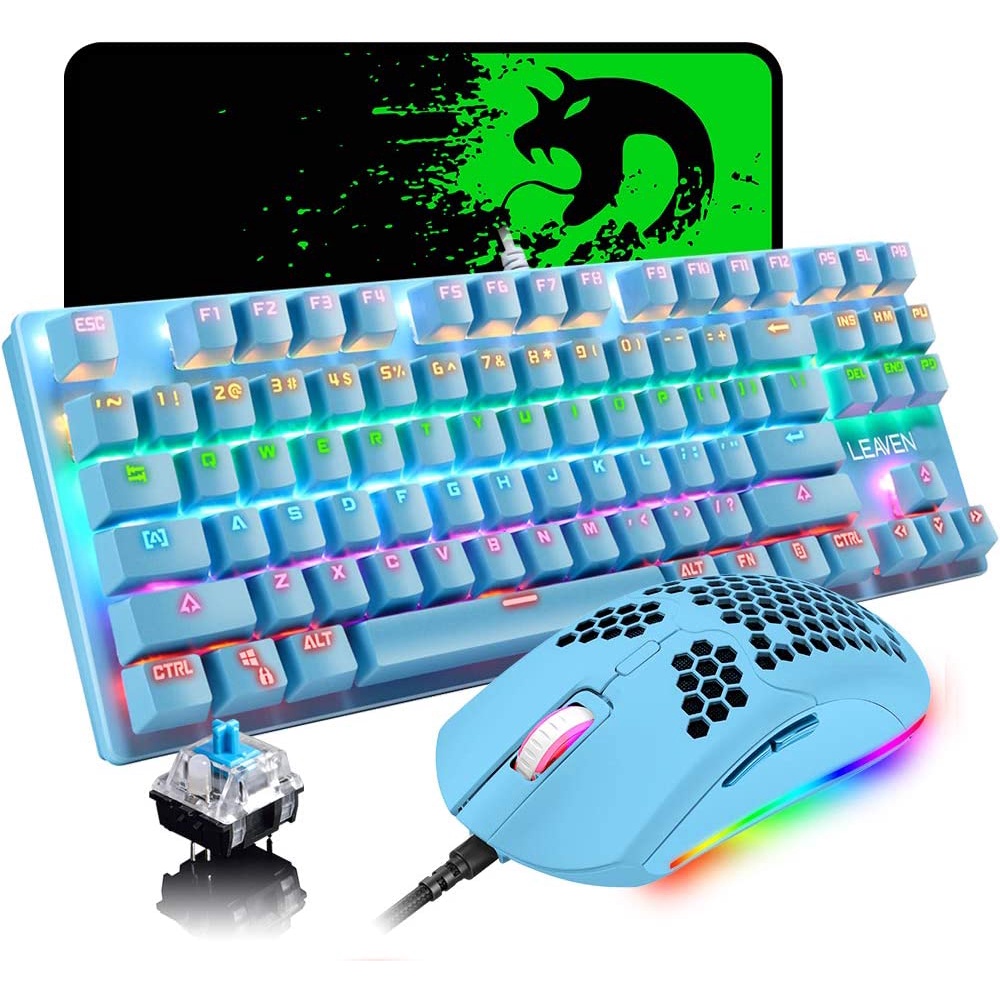 Mechanical Wired Black Gaming Keyboard Blue Switch Mini 87 Keys RGB Backlit Keyboard,Programmable 6400DPI Ultra-Light Ho