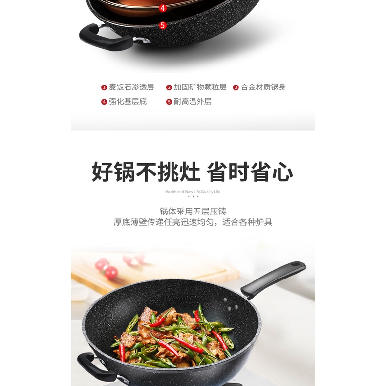 Medical Stone Wok Non-Stick Pan Household Iron Pan Smoke-Free Cooking Pot-Non-Stick Frypan Frying Pan Wok/Grill Pans Woks/Cooking Wok YRQL