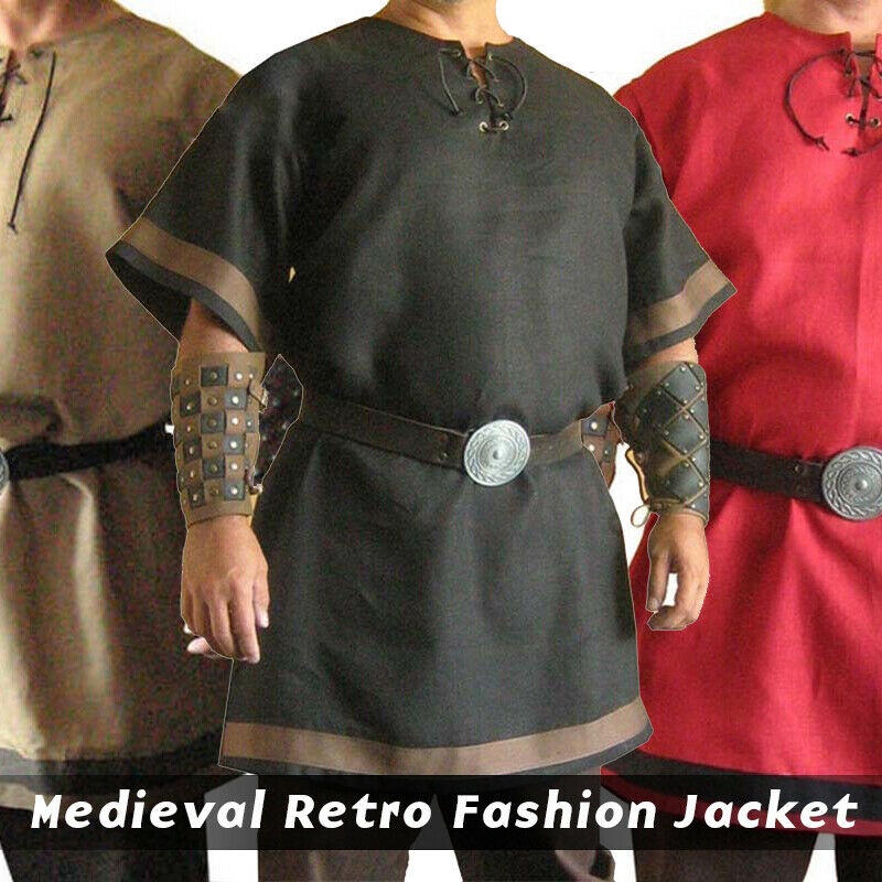 Medieval Viking Men Tunic Top Shirt Blouse Pirate Knight Cosplay Fancy Costume