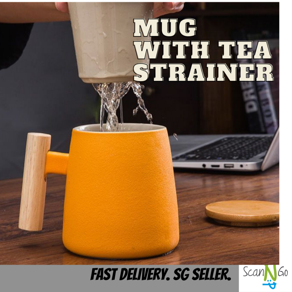 [SG Seller] Nordic Inspired Design TEA CUP Mug with Strainer 450ml Ceramic Coffee Cup Tea Separation