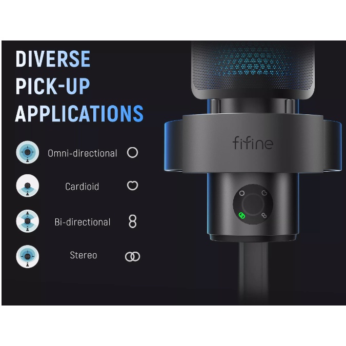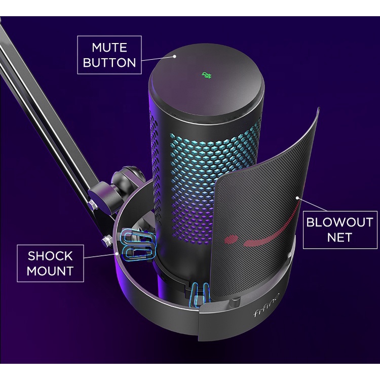 Fifine A9 RGB Microphone 4 Directional Modes Quick Mute Button Perfect for Gaming Podcasting Recording