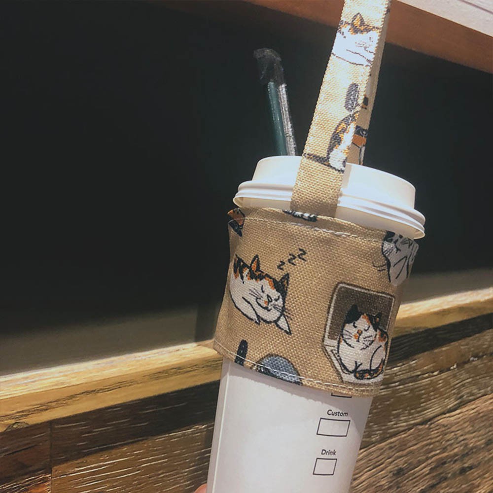 Canvas Cup Bag Water Bottle Case Reusable Cup Bag Holder Handheld Water Bottle Cover Mug Sleeve Carrier Sport Camping Heat Insulation Cup Accessories