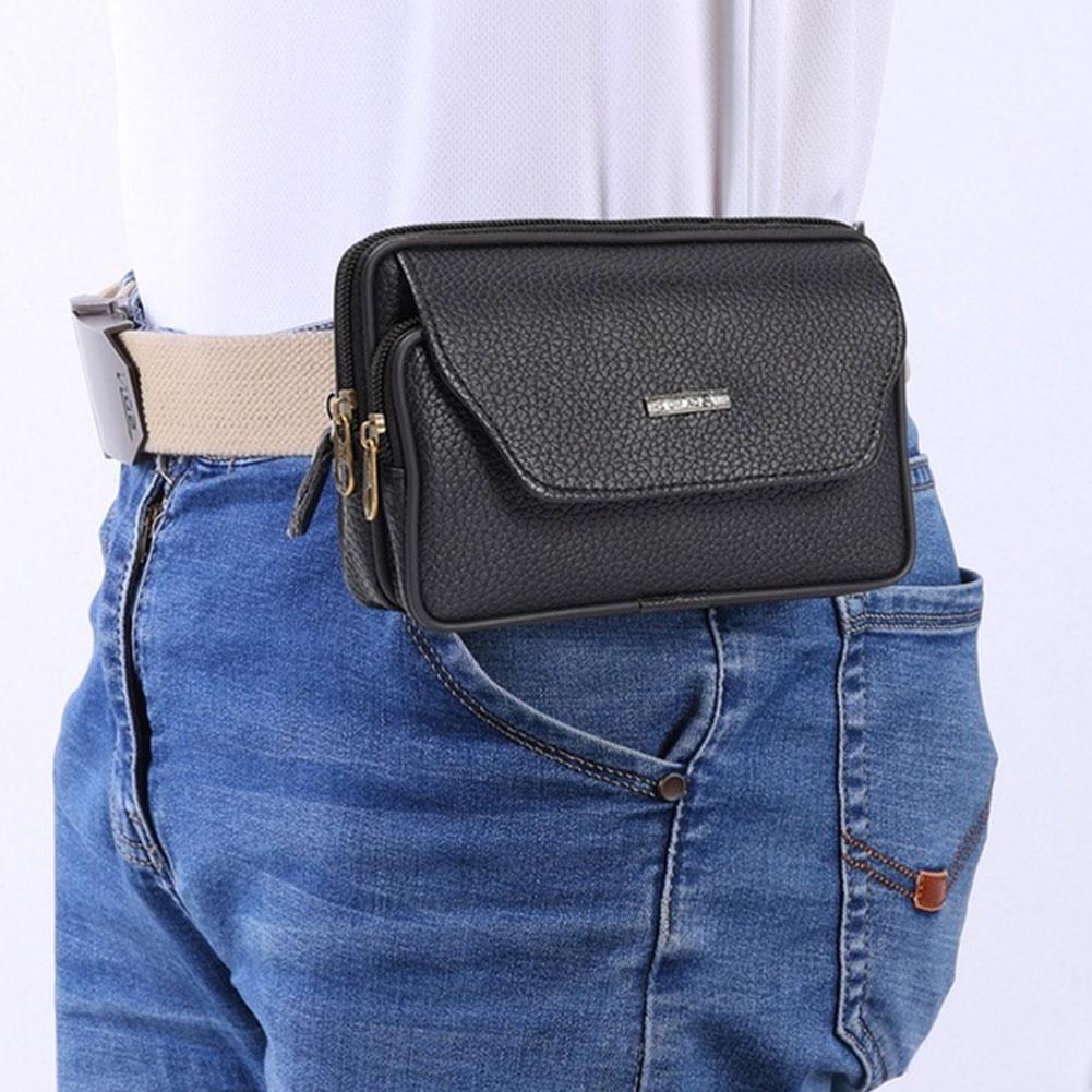 Men's Belt Loop Zipper Multi-Pockets Waist Bag Small Waist Bag Pouch