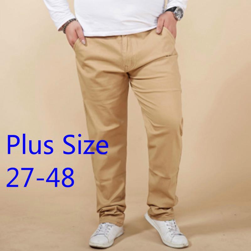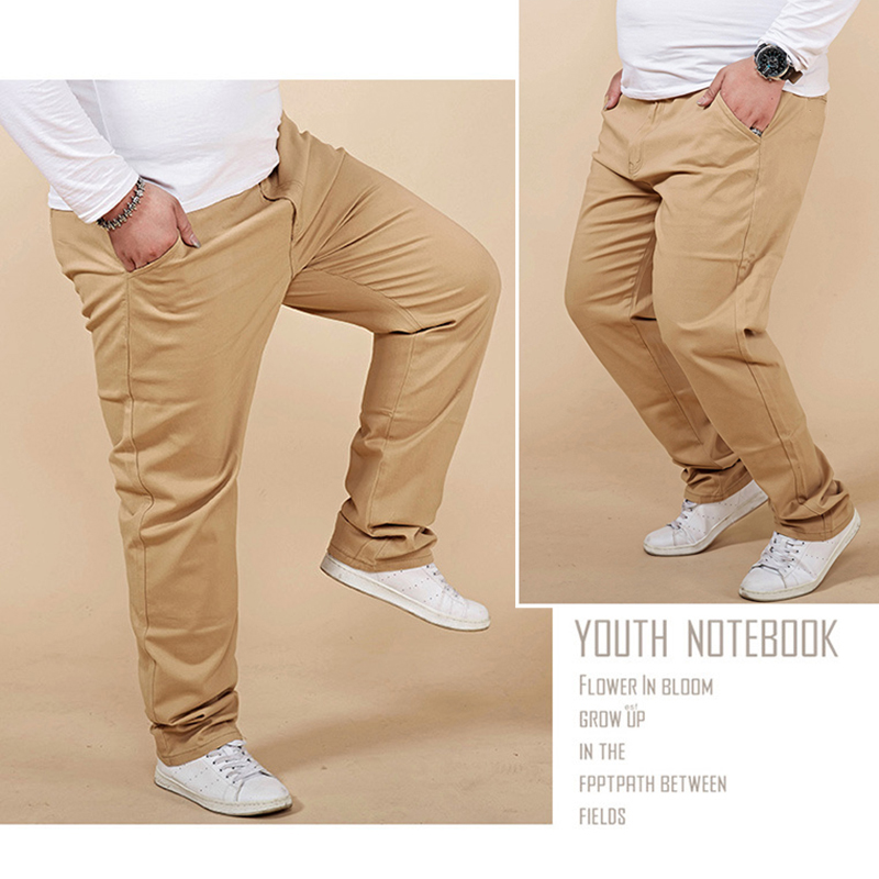 Men's Large Size Long Pants Khaki / Black Cotton Fabric Casual Men Trousers Plus Size