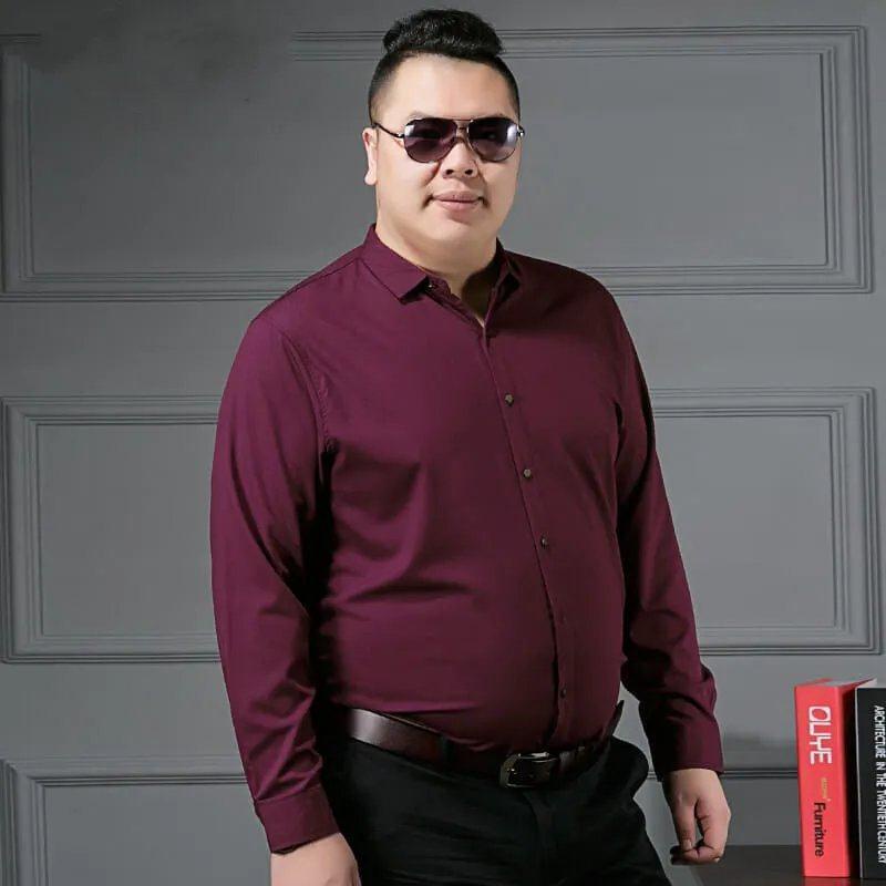 Men's Plus Size M-8XL Formal Shirt Big Size Business Long Sleeve Loose Solid Color Shirts Kemeja Baju Lelaki Tops