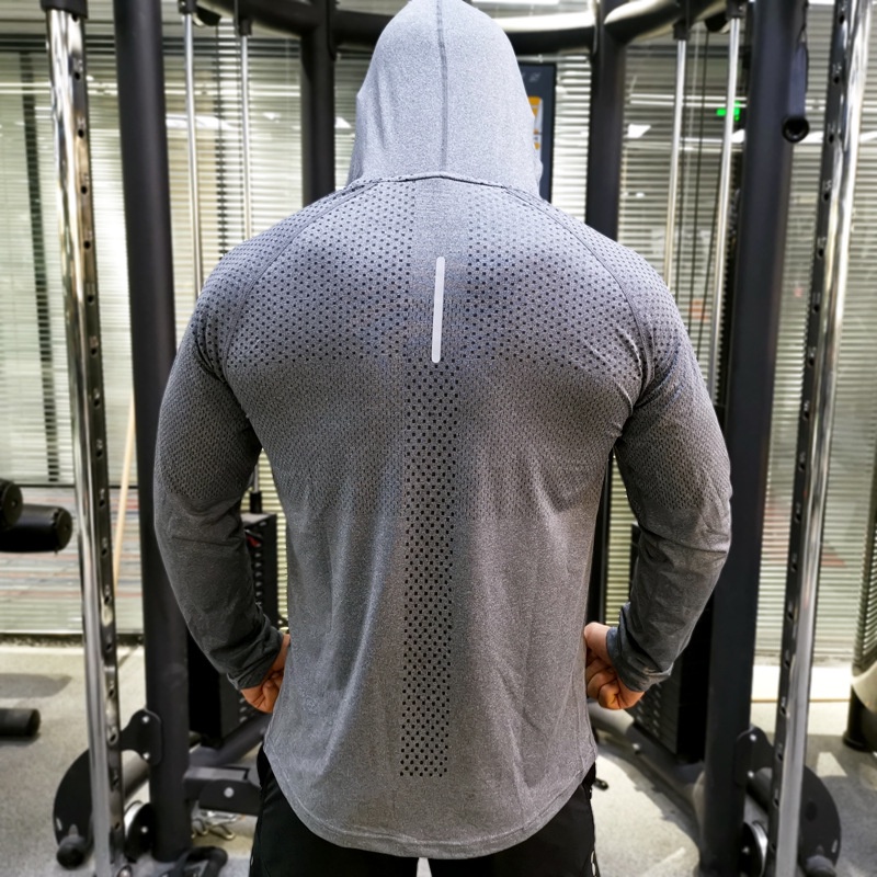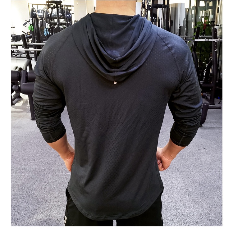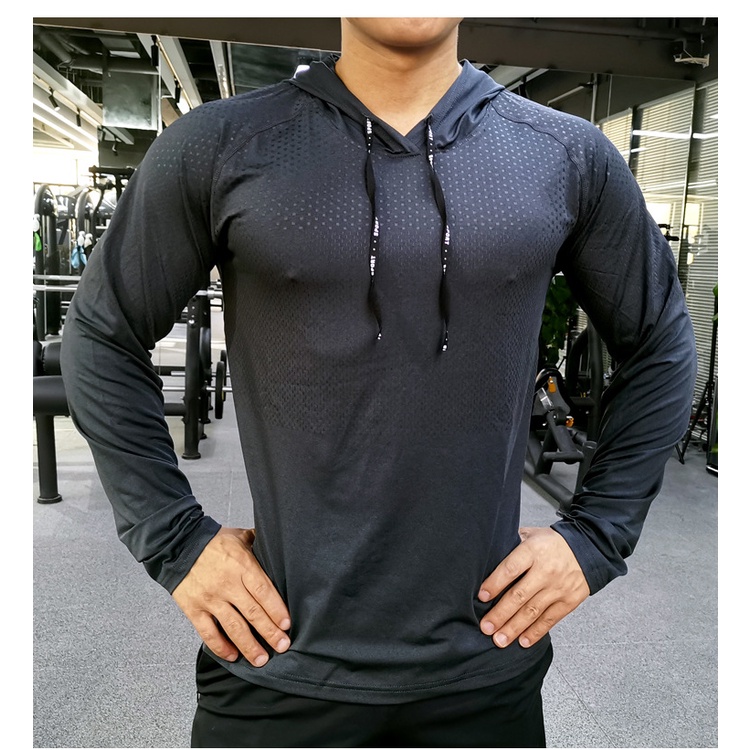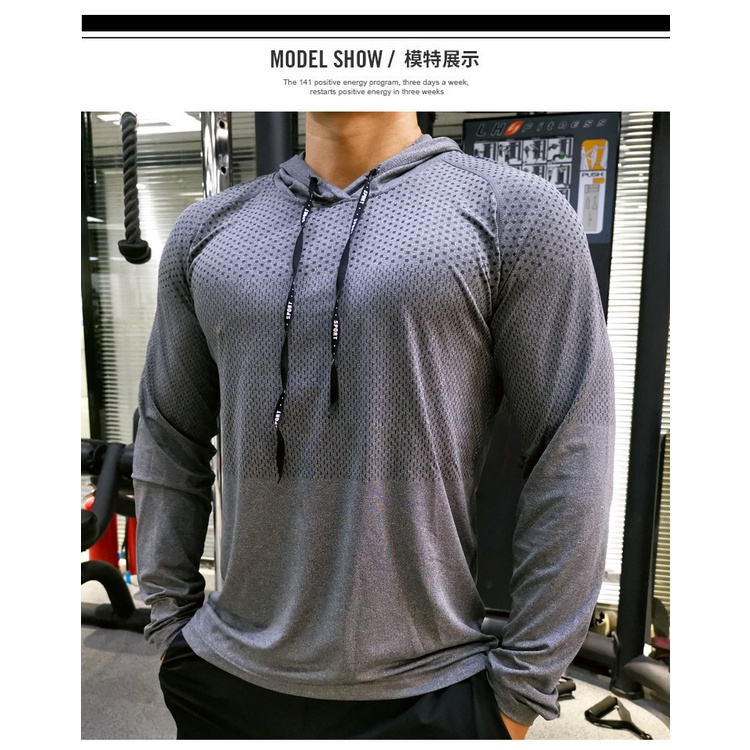 Men's Running Shirt Long Sleeve Workout Shirts with Hoods Sweatshirt Loose Casual Hoodie Athletic Workout T-Shirts