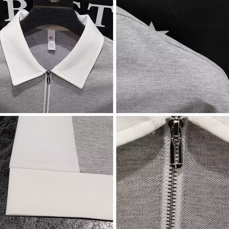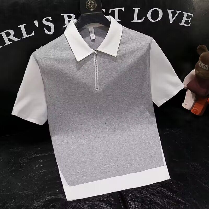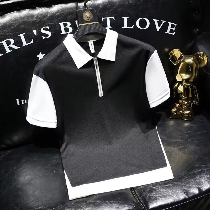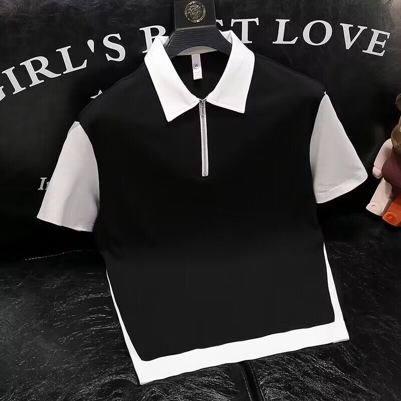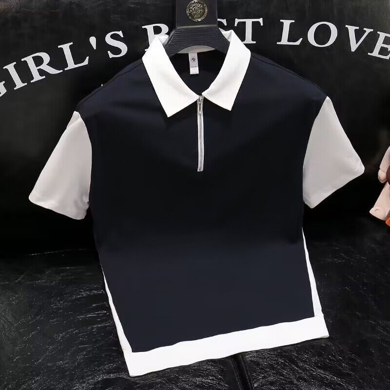 Men's polo shirt/color matching polo shirt/lapel polo shirt/cotton polo shirt/Summer New Men's Fashion half zipper polo shirt advanced sense lapel short sleeve micro wide casual color matching half sleeve fashion
