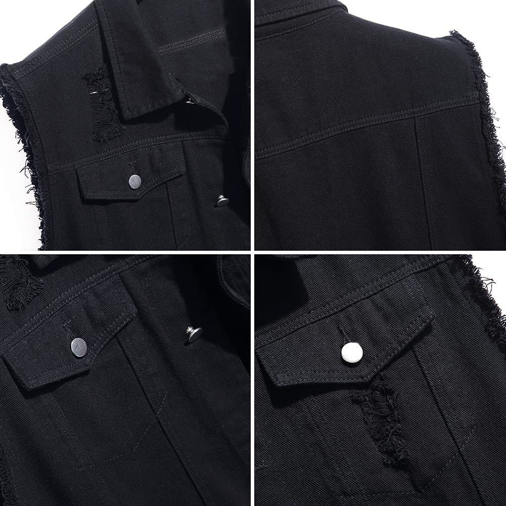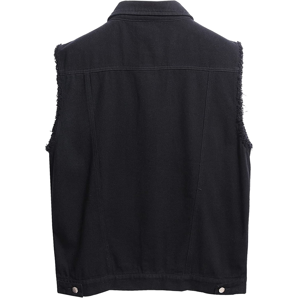 Men Denim Vest Sleeveless Ripped Slim fit Distressed Jean Jacket