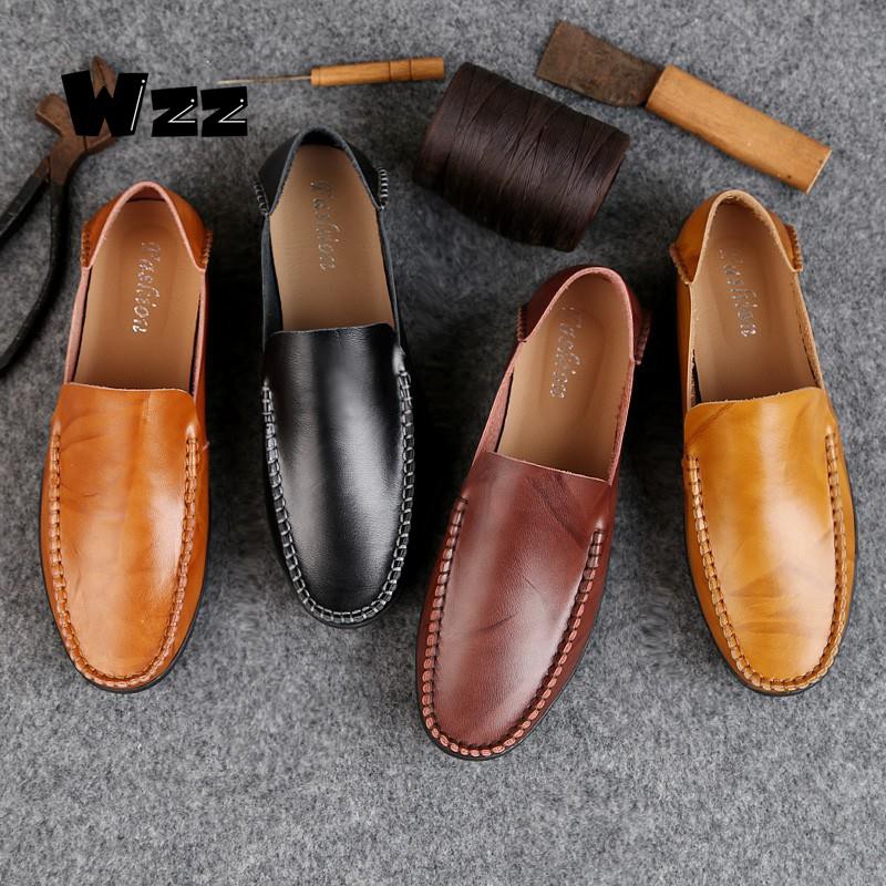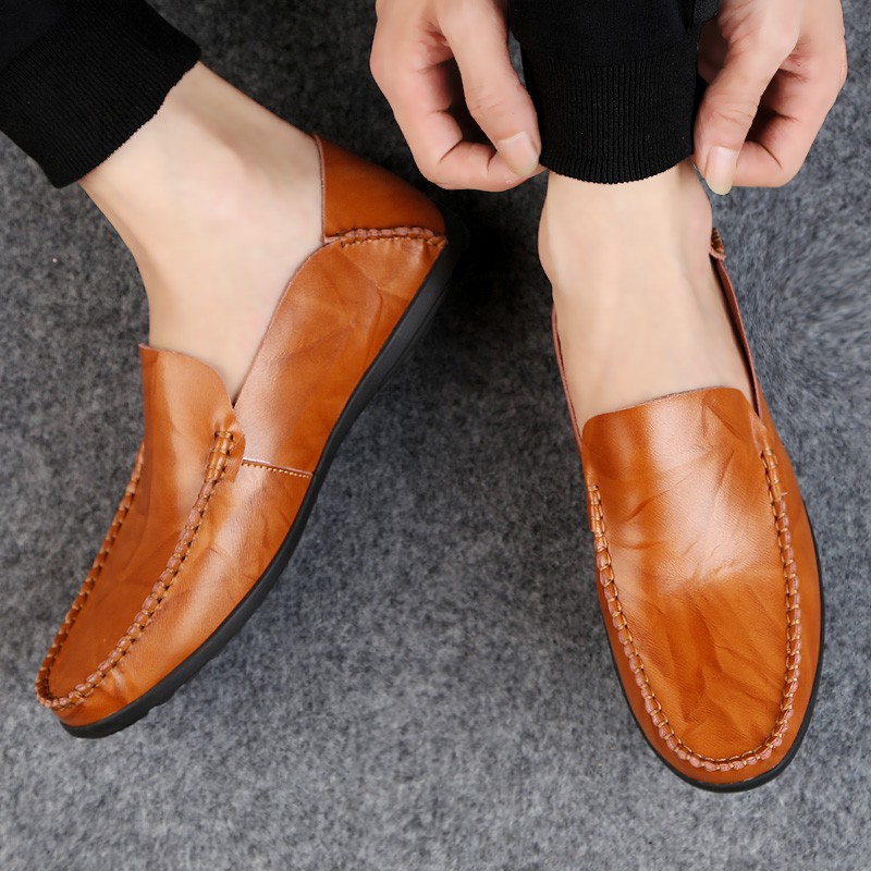 Men Loafers Casual Leather Boat Shoes Light Soft Driving Shoes Big Size Slip On Men Loafer