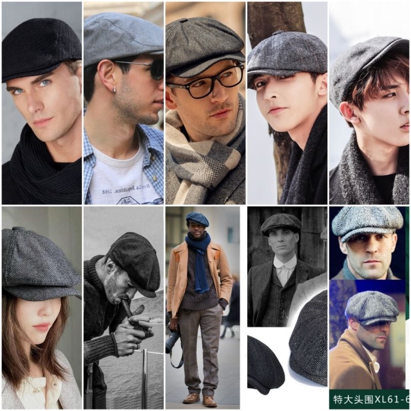 Men Retro Beret Wool Blend Vintage Herringbone Tweed Men Casual Newsboy Hat Flat Cap Men Casual
