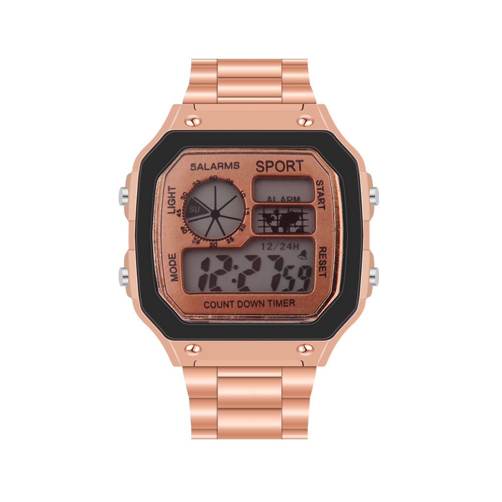 Men Watches Waterproof LCD Colorful Cold Light Watch Stainless Steel Digital Watch 5 Alarm Clock World Time Fashion Watches