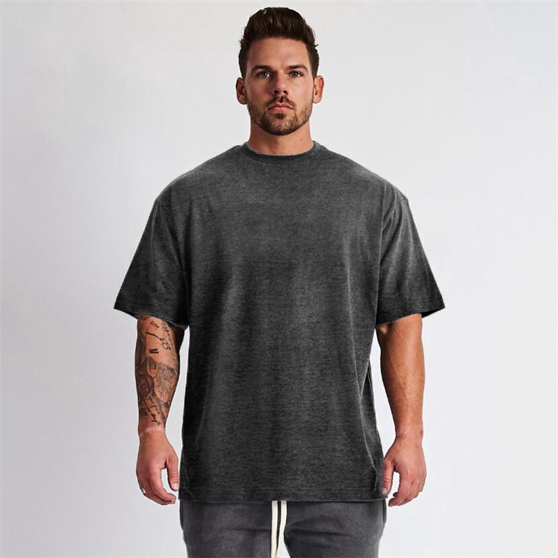 Mens Loose Oversized Fit Short Sleeve T-shirt With Dropped Shoulder Retro Fitness T Shirt Summer Gym Bodybuilding Tops Tees