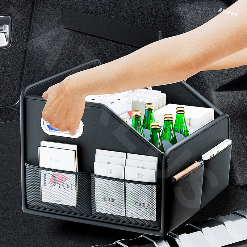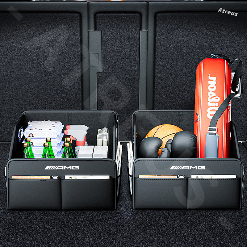 Mercedes Benz AMG Car Trunk Leather Storage Box Rear Trunk Multipurpose Organizer Car Boot Foldable Box For Benz C Class W207 W211 W205 W212 W204 W220 W206 W124 W213 W218 W222