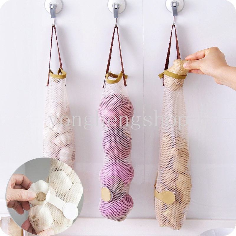 Mesh Net Vegetable Storage Bag Onion Garlic Hanging Bags Breathable Mesh Bag Kitchen Storage Bag Organizer