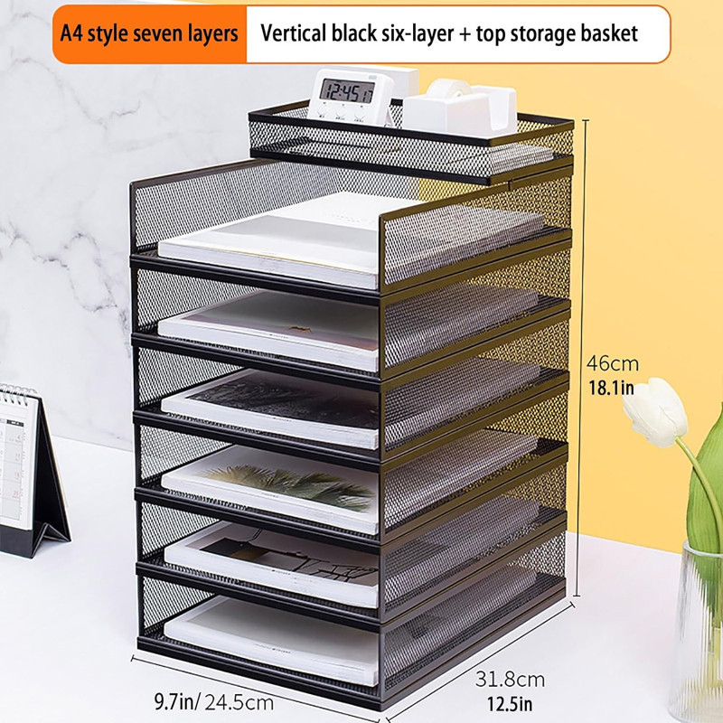 Metal Desk Organizer Box A3A4 Paper Organizer Document File Brochure Filling Tray Rack Shelf Carrier